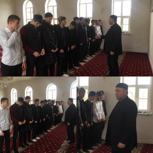 Студенты нашего колледжа совершили коллективную молитву ЗУХ1Р во главе с имамом Асхьабом Гаевым. Он рассказал присутствующим о величестве наступающей ночи Бараат.